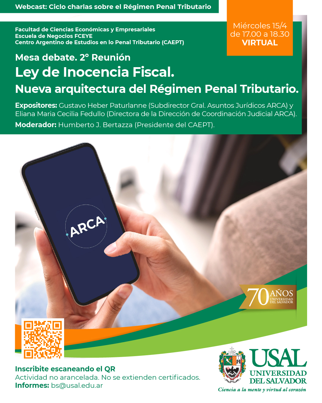 Organizan: Escuela de Negocios de la Facultad de Ciencias Económicas y Empresariales de la USAL - Centro Argentino de Estudios en lo Penal Tributario